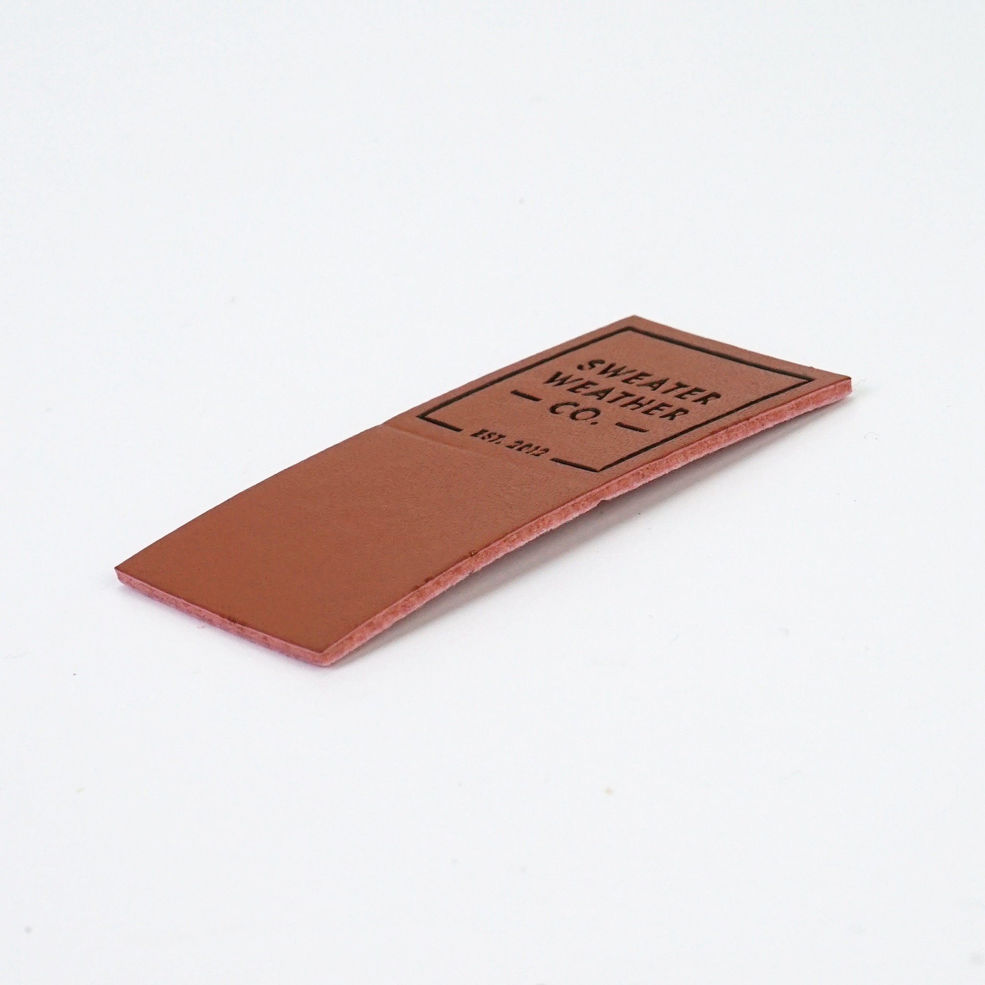 Leather Labels - Clothing Labels 4 U Leather labels can be attached to clothing or use them as hang tags to really stand out and give your items a designer look. Here is a sample selection of leather labels that we are capable of doing. Let us create yours according to your design specifications. Embossed Reverse Embossed There is a minimum order of 250 when ordering leather labels.