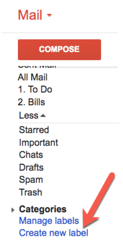 Gmail labels and filters: tutorial and a step-by-step guide Here is how to create a parent label: To create a new label that will be the main folder, click "More" in the list of labels on the left side of the Gmail screen. Expand the list and click the "Create new label" link: Input a name for the label in the "Please enter a new label name" box, then click "Create" to finish creating ...